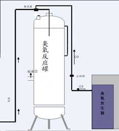 1.4氧化塔上端側(cè)部進(jìn)水,下端側(cè)部出水,水自上而下流經(jīng)氧化塔,與氣相的臭氧氣泡形成逆流,提高混合效率。