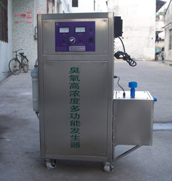外接冷卻水的方法有兩種:直接連接自來水或用水箱+循環(huán)泵做一個(gè)循環(huán)利用的 水系統(tǒng)。下圖為外接冷卻水箱的40克臭氧發(fā)生器: