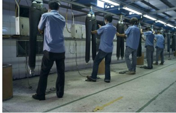 c) 人造石:由于天然的浮石含有礦物質(zhì)比較多,尤其含鐵較多,因此難以通過(guò)驗(yàn)針機(jī),而一些衣服又要達(dá)到石磨特有的效果,這樣可以采用人造石。人造石是通過(guò)化學(xué)方法加工而成,其顆粒非常均勻,具有損耗小的特點(diǎn),可達(dá)到一般的石磨效果。但價(jià)格較貴。